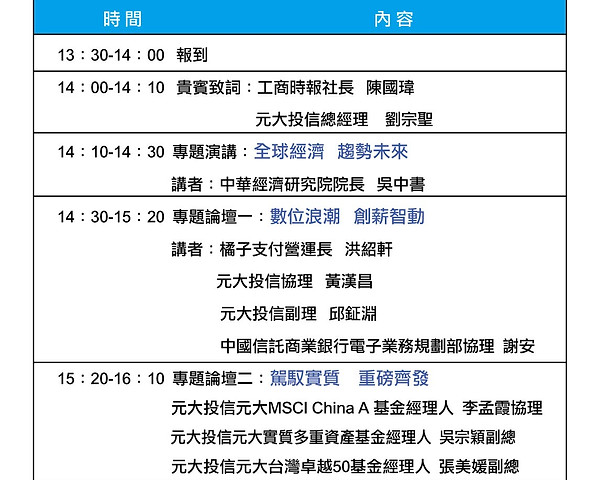 另隨著台灣行動支付興起,大眾消費模式跟著改變,新ㄧ波的理財工具革命也悄然展開…投資者是否跟得上行動支付Vs.理財工具、化零為整的理財新趨勢?期望透過論壇講者專業剖析下,讓投資者更清楚如何掌握財富致勝的關鍵。